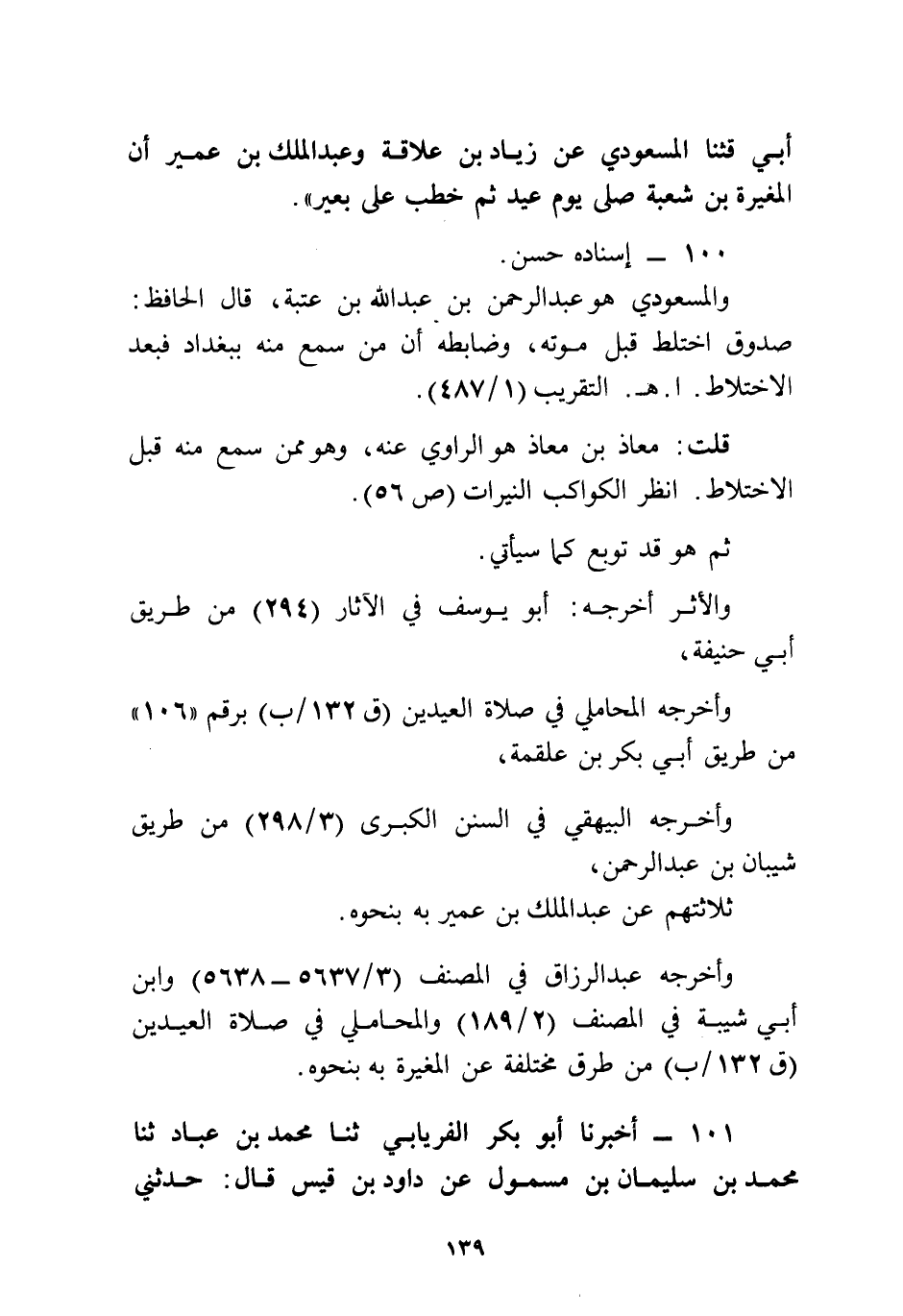 أَخْبَرَنَا أَبُو بَكْرٍ الْفِرْيَابِيُّ، ثنا مُحَمَّدُ بْنُ عَبَّادٍ، ثنا مُحَمَّدُ بْنُ سُلَيْمَانَ بْنِ مَسْمُولٍ، عَنْ دَاوُدَ بْنِ قَيْسٍ، قَالَ: حَدَّثَنِي -[140]- عِيَاضُ بْنُ عَبْدِ اللَّهِ بْنِ سَعْدِ بْنِ أَبِي سَرْحٍ، أَنَّهُ سَمِعَ أَبَا سَعِيدٍ الْخُدْرِيِّ، يَقُولُ: «§خَطَبَنَا رَسُولُ اللَّهِ صَلَّى اللهُ عَلَيْهِ وَسَلَّمَ فِي يَوْمِ عِيدٍ عَلَى رَاحِلَتِهِ»