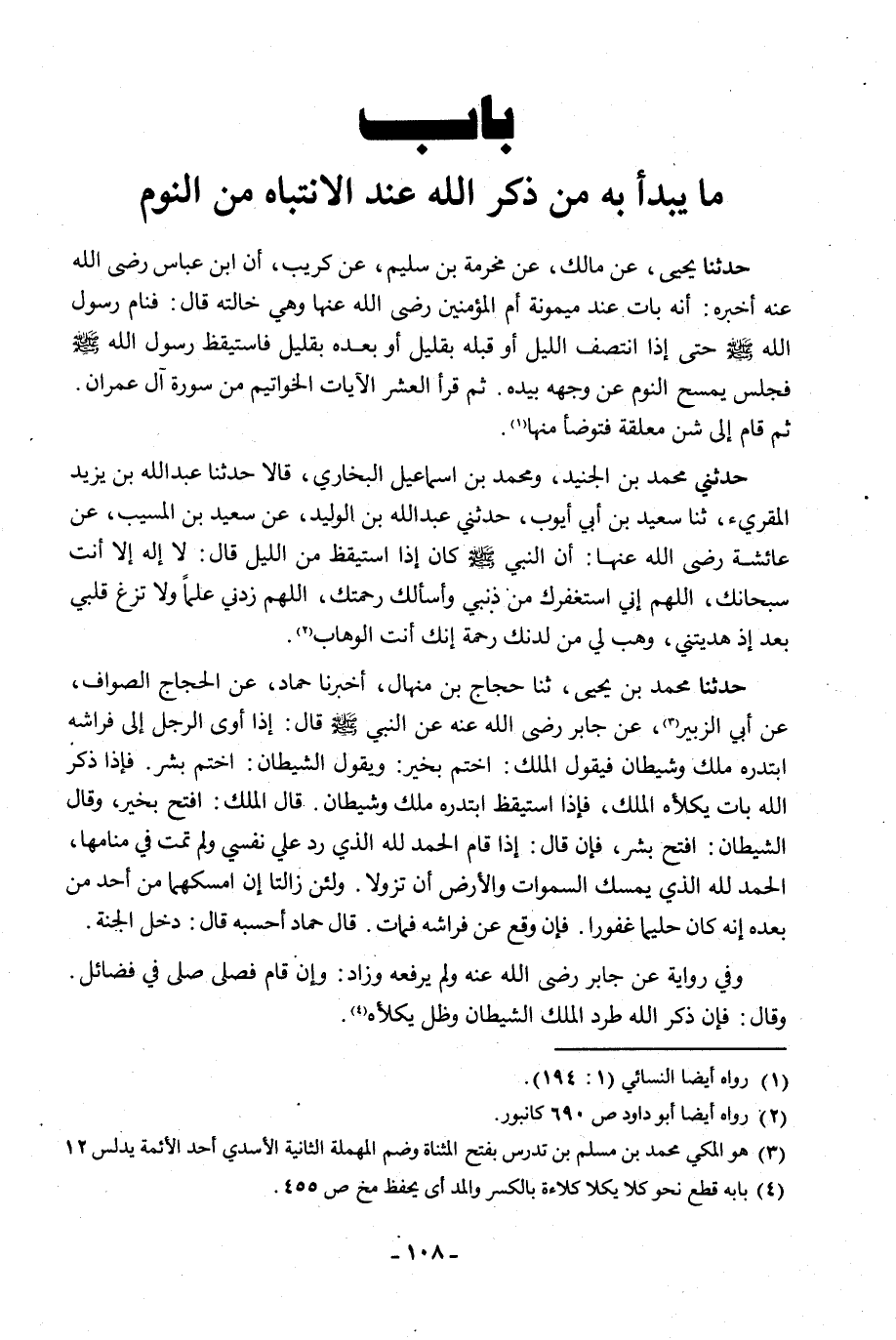 §بَابُ مَا يُبْدَأُ بِهِ مِنْ ذِكْرِ اللَّهِ عِنْدَ الِانْتِبَاهِ مِنَ النَّوْمِ
