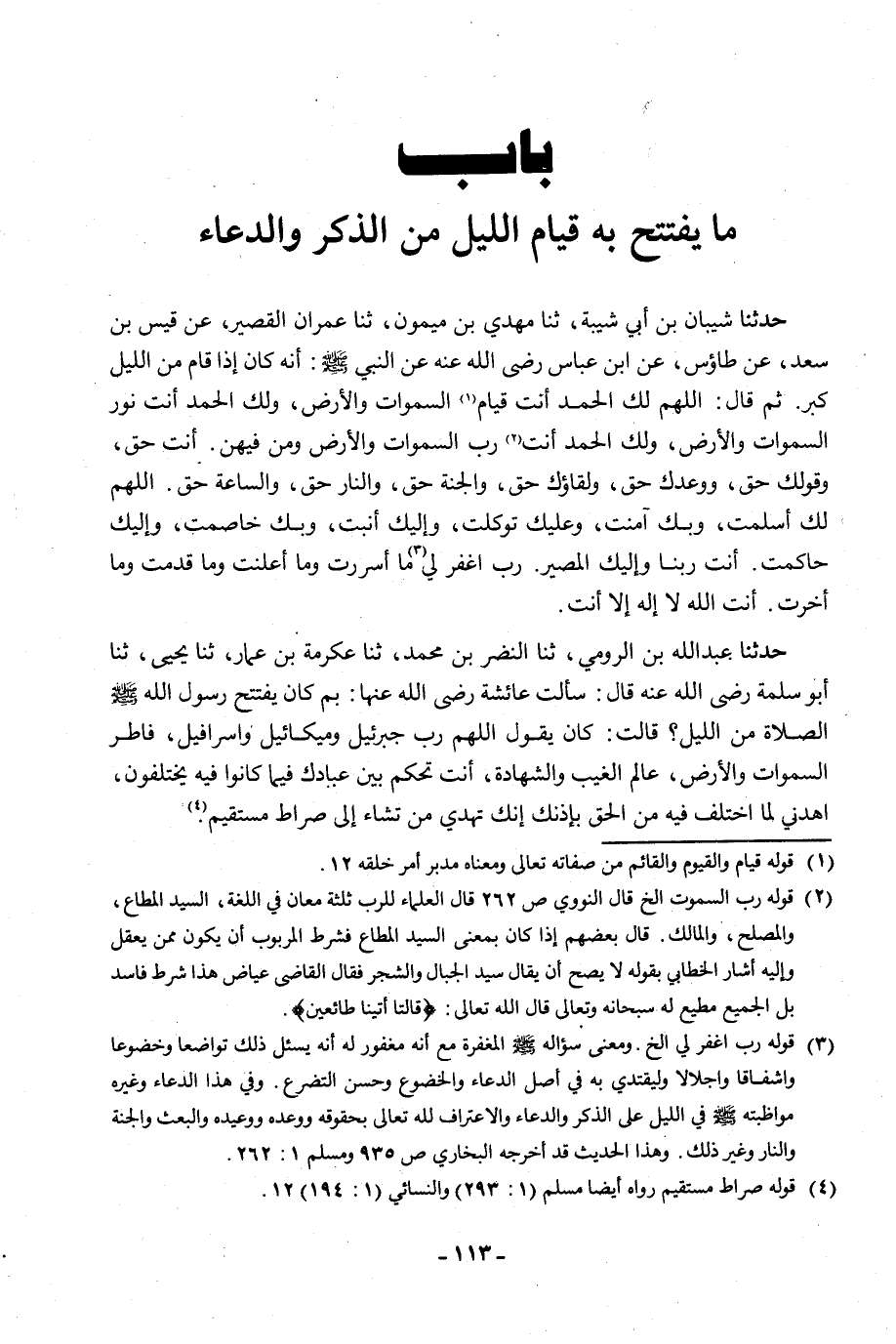 حَدَّثَنَا شَيْبَانُ بْنُ أَبِي شَيْبَةَ، ثنا مَهْدِيُّ بْنُ مَيْمُونٍ، ثنا عِمْرَانُ الْقَصِيرُ، عَنْ قَيْسِ بْنِ سَعْدٍ، عَنْ طَاوُسٍ، عَنِ ابْنِ عَبَّاسٍ رَضِيَ اللَّهُ عَنْهُ عَنِ النَّبِيِّ صَلَّى اللَّهُ عَلَيْهِ وَسَلَّمَ: أَنَّهُ كَانَ إِذَا قَامَ مِنَ اللَّيْلِ كَبَّرَ ثُمَّ قَالَ: «§اللَّهُمَّ لَكَ الْحَمْدُ أَنْتَ قَيَّامُ السَّمَوَاتِ وَالْأَرْضِ، وَلَكَ الْحَمْدُ أَنْتَ نُورُ السَّمَوَاتِ وَالْأَرْضِ، وَلَكَ الْحَمْدُ أَنْتَ رَبُّ السَّمَوَاتِ وَمَنْ فِيهِنَّ، أَنْتَ حَقٌّ، وَقَوْلُكَ حَقٌّ، وَوَعْدُكَ حَقٌّ، وَلِقَاؤُكَ حَقٌّ، وَالْجَنَّةُ حَقٌّ، وَالنَّارُ حَقٌّ، وَالسَّاعَةُ حَقٌّ، اللَّهُمَّ لَكَ أَسْلَمْتُ، وَبِكَ آمَنْتُ، وَعَلَيْكَ تَوَكَّلْتُ، وَإِلَيْكَ أَنَبْتُ، وَبِكَ خَاصَمْتُ، وَإِلَيْكَ حَاكَمْتُ، أَنْتَ رَبُّنَا وَإِلَيْكَ الْمَصِيرُ، رَبِّ اغْفِرْ لِي مَا أَسْرَرْتُ وَمَا أَعْلَنْتُ وَمَا قَدَّمْتُ وَمَا أَخَّرْتُ، أَنْتَ اللَّهُ لَا إِلَهَ إِلَّا أَنْتَ»