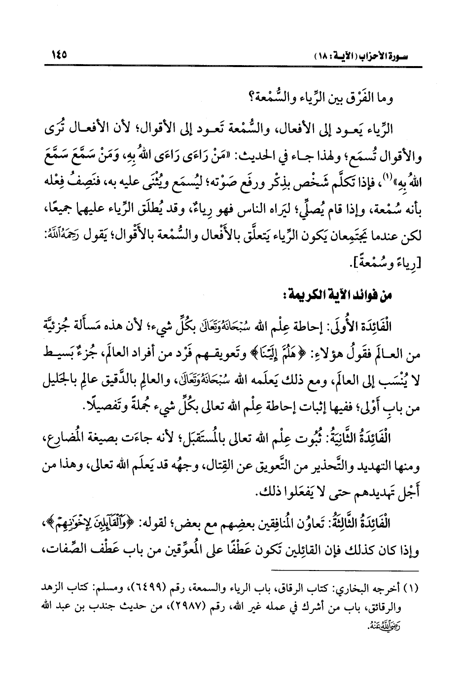 (¬١) أخرجه البخاري: كتاب الرقاق، باب الرياء والسمعة، رقم (٦٤٩٩)، ومسلم: كتاب الزهد والرقائق، باب من أشرك في عمله غير اللَّه، رقم (٢٩٨٧)، من حديث جندب بن عبد اللَّه -رضي اللَّه عنه-.