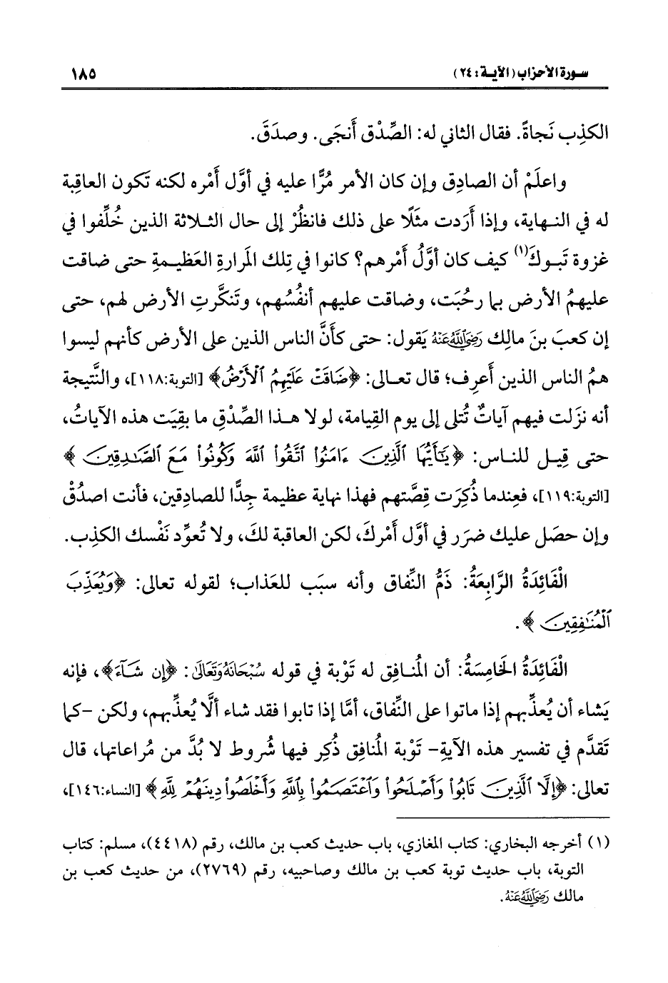 (¬١) أخرجه البخاري: كتاب المغازي، باب حديث كعب بن مالك، رقم (٤٤١٨)، مسلم: كتاب التوبة، باب حديث توبة كعب بن مالك وصاحبيه، رقم (٢٧٦٩)، من حديث كعب بن مالك -رضي اللَّه عنه-.