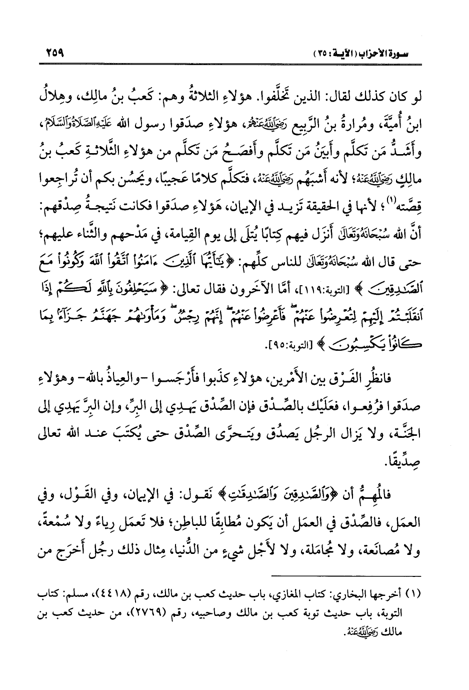 (¬١) أخرجها البخاري: كتاب المغازي، باب حديث كعب بن مالك، رقم (٤٤١٨)، مسلم: كتاب التوبة، باب حديث توبة كعب بن مالك وصاحبيه، رقم (٢٧٦٩)، من حديث كعب بن مالك -رضي اللَّه عنه-.