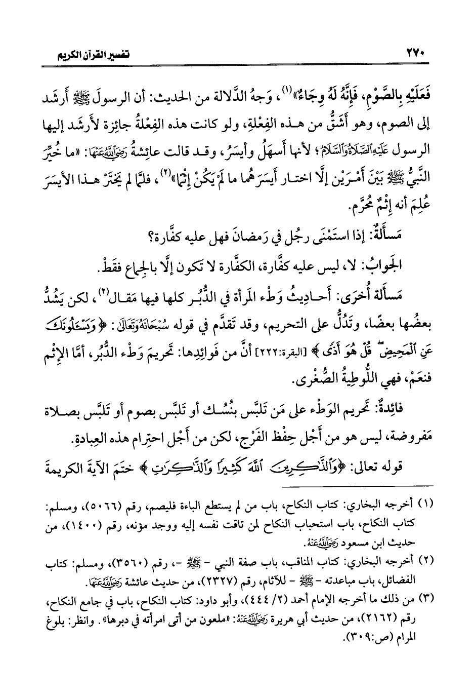 (¬٣) من ذلك ما أخرجه الإمام أحمد (٢/ ٤٤٤)، وأبو داود: كتاب النكاح، باب في جامع النكاح، رقم (٢١٦٢)، من حديث أبي هريرة -رضي اللَّه عنه-: "ملعون من أتى امرأته في دبرها". وانظر: بلوغ المرام (ص: ٣٠٩).