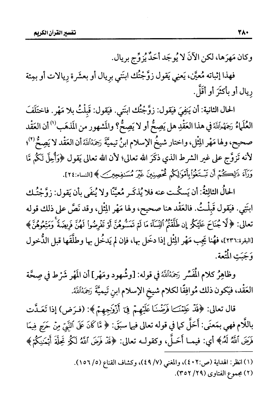 وظاهِرُ كلام المُفَسِّر رَحِمَهُ اللَّهُ في قوله: [وشُهود ومَهْر] أن المَهْر شَرْط في صِحَّة العَقْد، فيَكون ذلك مُوافِقًا لكلام شيخِ الإسلام ابنِ تَيميَّةَ رَحِمَهُ اللَّهُ.