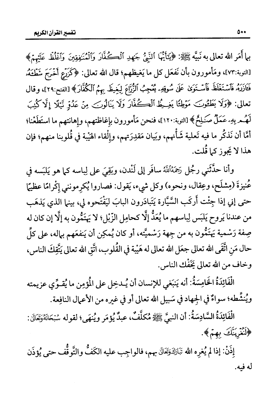 بما أَمَر اللَّه تعالى به نَبيَّه -صلى اللَّه عليه وسلم-: {يَاأَيُّهَا النَّبِيُّ جَاهِدِ الْكُفَّارَ وَالْمُنَافِقِينَ وَاغْلُظْ عَلَيْهِمْ} [التوبة: ٧٣]، ومَأمورون بأن نَفعَل كل ما يَغيظهم؛ قال اللَّه تعالى: {كَزَرْعٍ أَخْرَجَ شَطْأَهُ فَآزَرَهُ فَاسْتَغْلَظَ فَاسْتَوَى عَلَى سُوقِهِ يُعْجِبُ الزُّرَّاعَ لِيَغِيظَ بِهِمُ الْكُفَّارَ} [الفتح: ٢٩]، وقال تعالى: {وَلَا يَطَئُونَ مَوْطِئًا يَغِيظُ الْكُفَّارَ وَلَا يَنَالُونَ مِنْ عَدُوٍّ نَيْلًا إِلَّا كُتِبَ لَهُمْ بِهِ عَمَلٌ صَالِحٌ} [التوبة: ١٢٠]، فنحن مَأمورون بإِغاظتهم، وإِهانتهم ما استَطَعْنا؛ أمَّا أن نَذكُر ما فيه تَعلية شَأْنهم، وبَيان مَقدِرَتهم، وإِلْقاء الهَيْبة في قُلوبنا منهم؛ فإن هذا لا يَجوز كما قُلت.