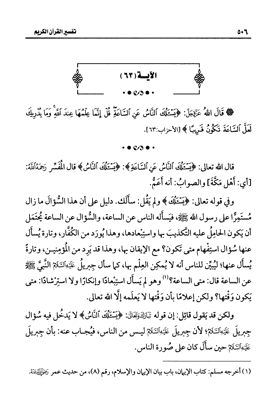 قال اللَّه تعالى: {يَسْأَلُكَ النَّاسُ عَنِ السَّاعَةِ}: {يَسْأَلُكَ النَّاسُ} قال المُفَسِّر رَحِمَهُ اللَّهُ: [أي: أَهْل مَكَّةَ] والصوابُ: أنه أَعَمُّ.