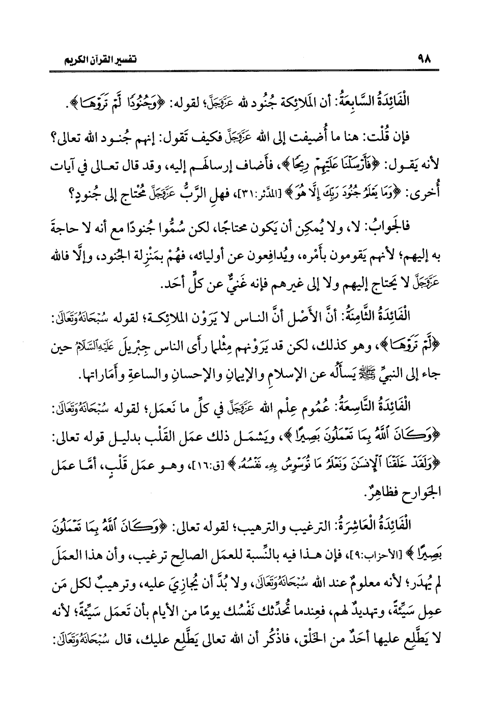 الْفَائِدَةُ السَّابِعَةُ: أن المَلائِكة جُنُود للَّه عَزَّ وَجَلَّ؛ لقوله: {وَجُنُودًا لَمْ تَرَوْهَا}.
