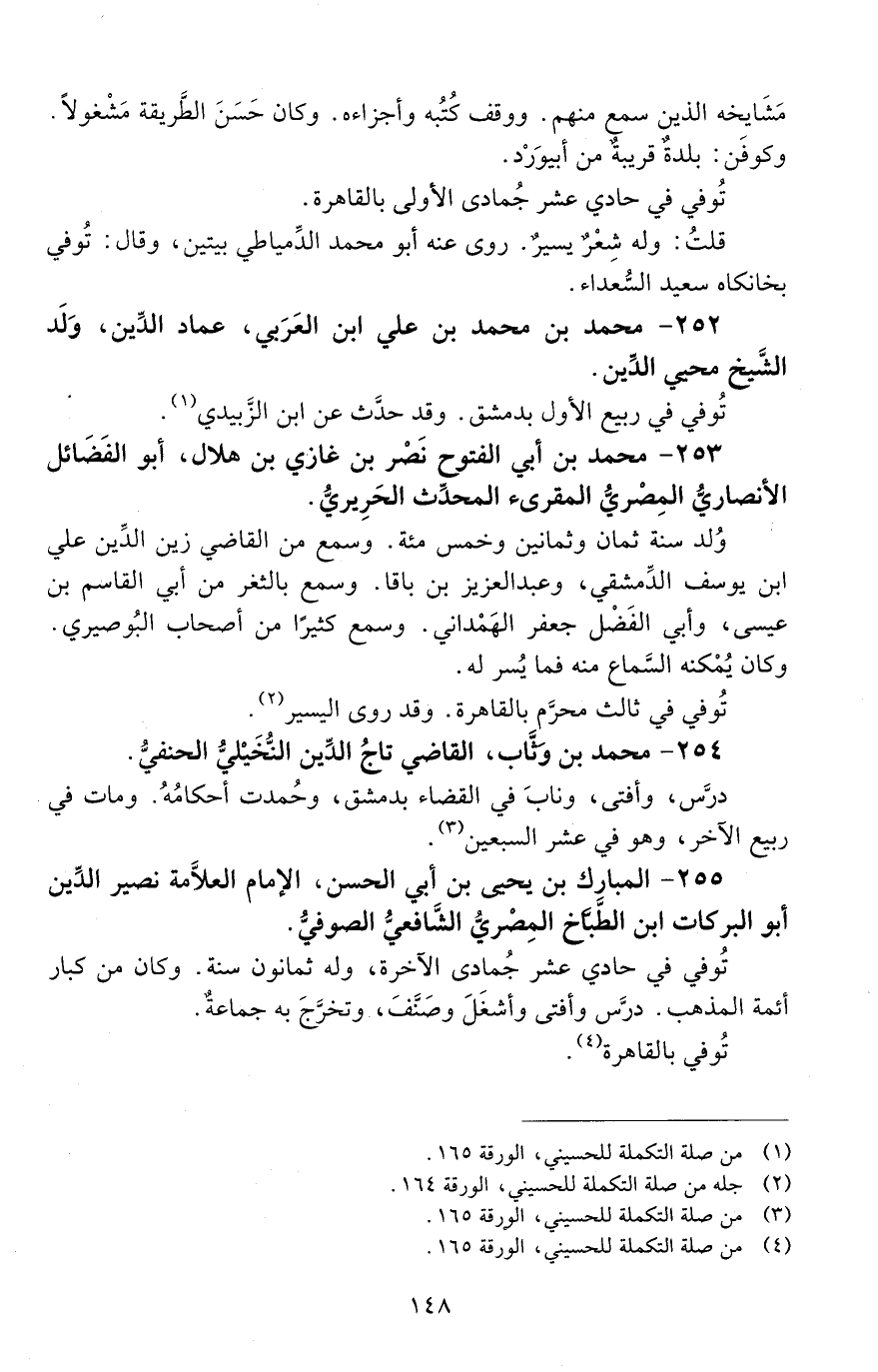 255 - المبارك بن يحيى بن أبي الحسن، الإمام، العلّامة، نصيرُ الدّين، أبو البركات بن الطباخ، المصري، الشّافعيّ، الصوفي. [المتوفى: 667 هـ]