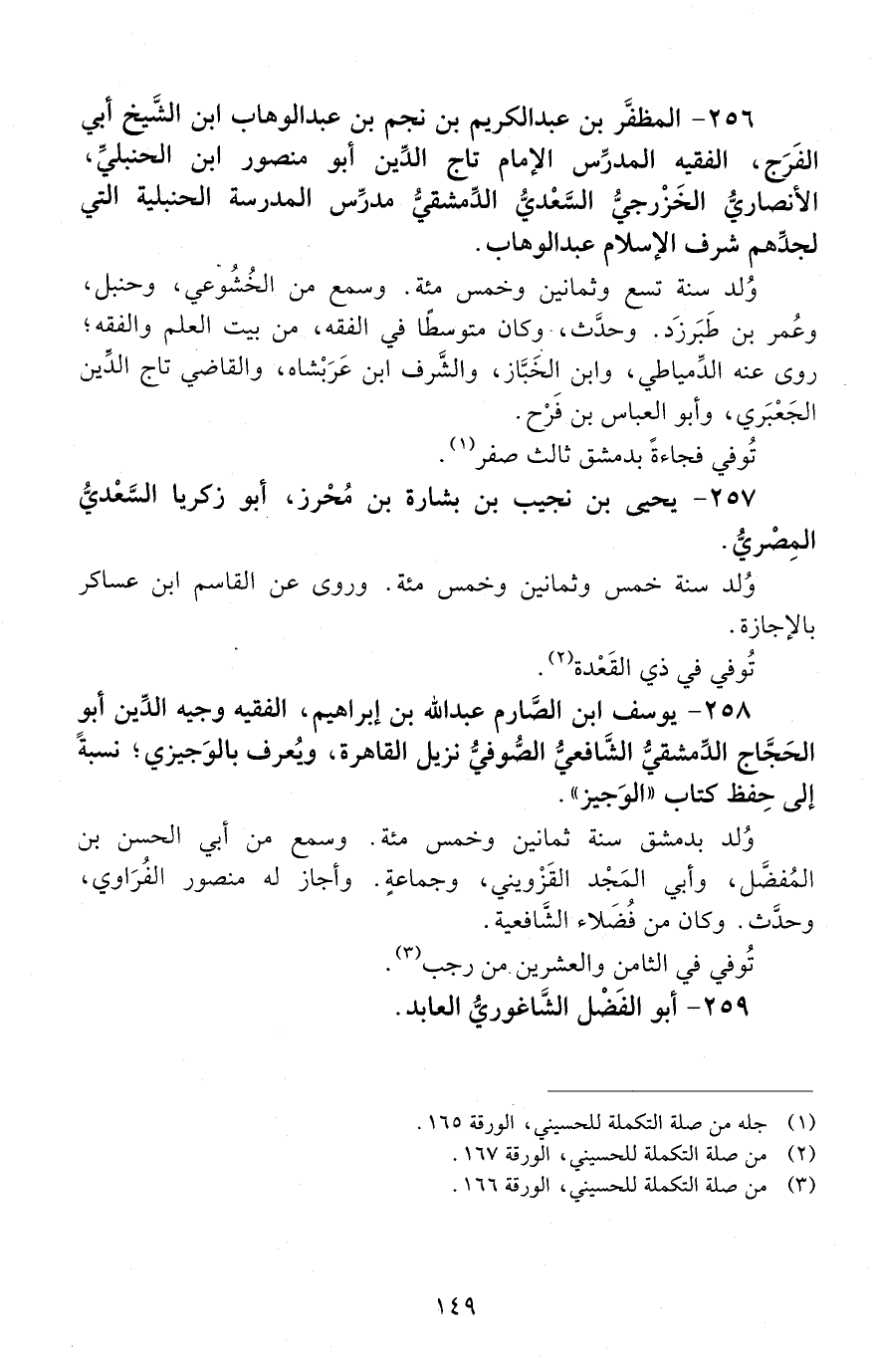 256 - المظفَّر بن عبد الكريم بن نجم بن عبد الوهّاب ابن الشّيخ أبي الفَرَج، الفقيه، المدرس، الإمام، تاج الدّين، أبو منصور، ابن الحنبليّ، الأنصاريّ، الخَزْرَجيّ، السَّعْديّ، الدّمشقيّ، [المتوفى: 667 هـ]