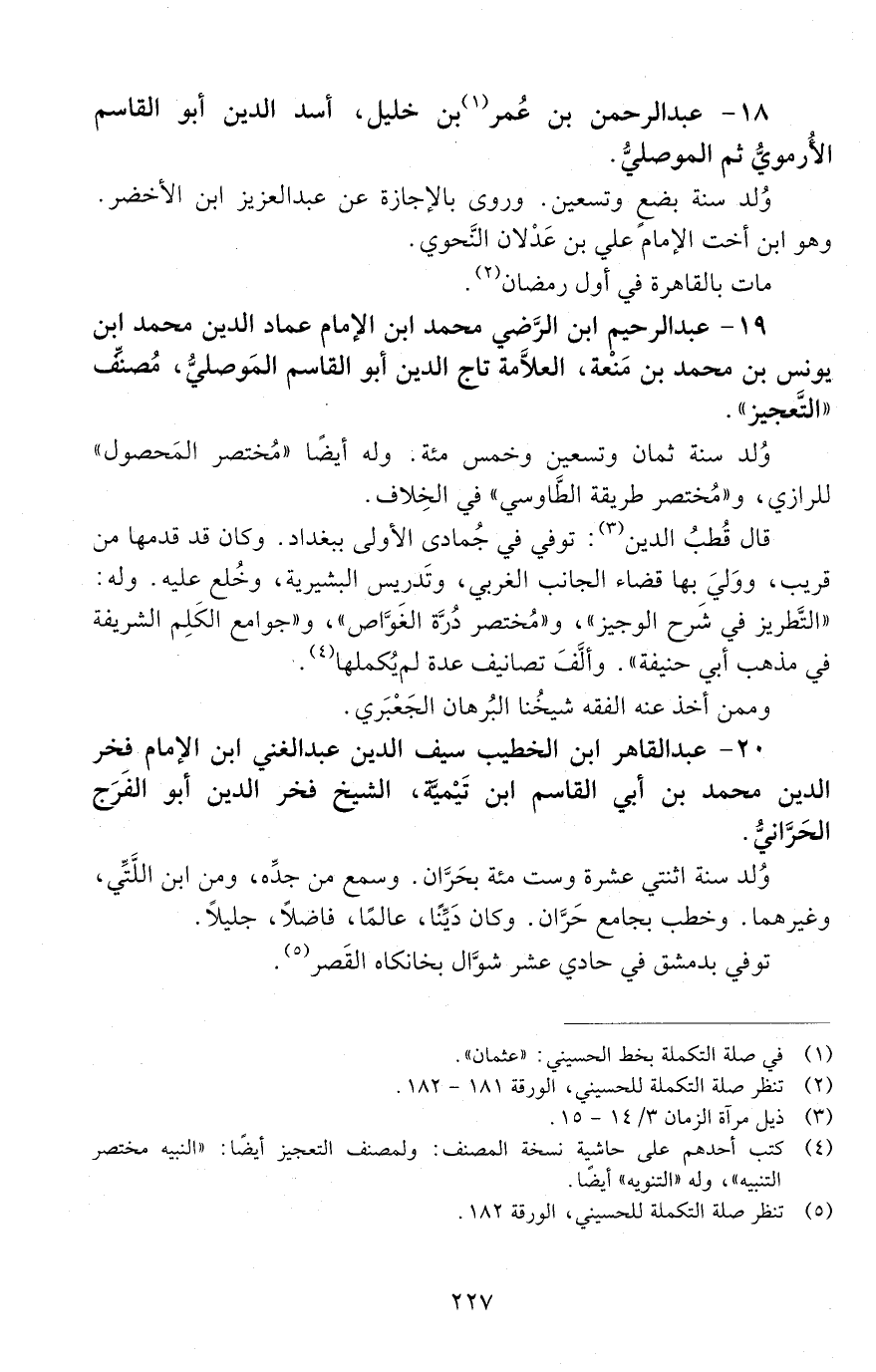 18 - عَبْد الرَّحْمَن بْن عُمَر بْن خليل، أَسَد الدّين، أبو القاسم الُأرْمَوِيّ، ثُمَّ الْمَوْصِلِيّ. [المتوفى: 671 هـ]