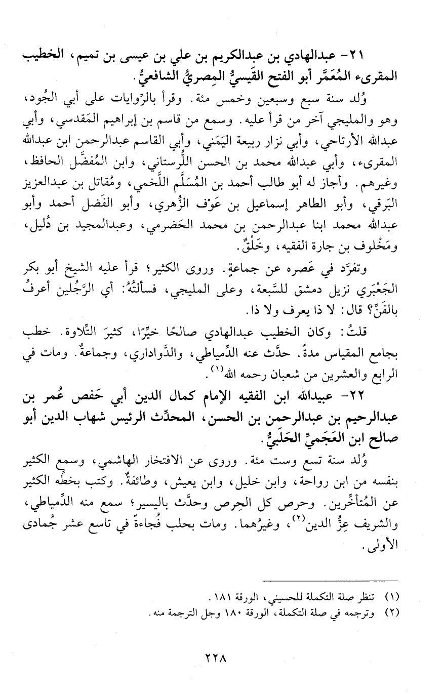 22 - عبيد الله ابن الفقيه الإِمَام كمال الدّين أبي حَفْص عُمَر بن عبد الرحيم بن عبد الرحمن بن الْحَسَن، المحدّث، الرّئيس، شهاب الدّين، أبو صالح ابن العجميّ، الحلبيّ. [المتوفى: 671 هـ]