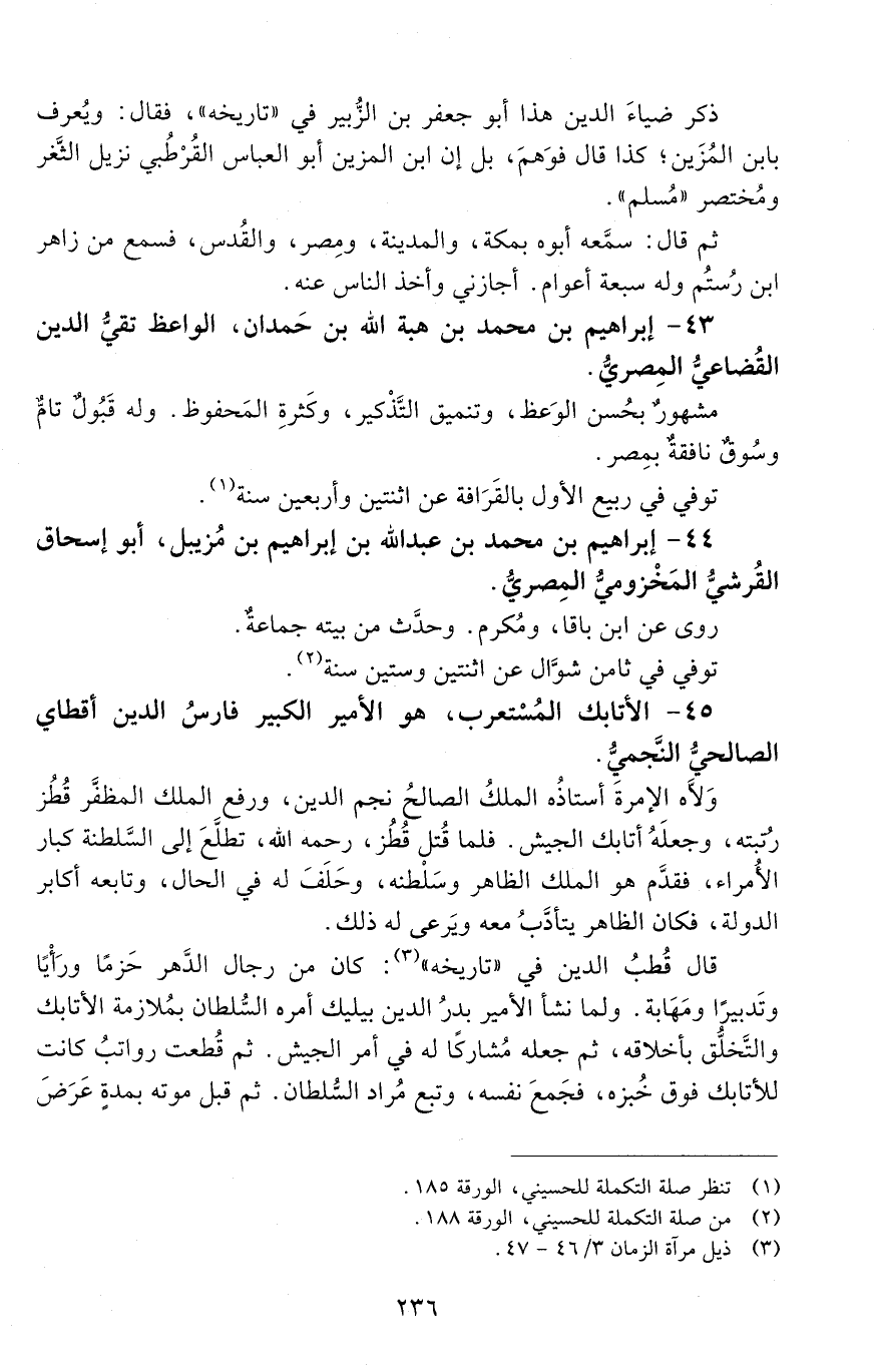 43 - إِبْرَاهِيم بْن مُحَمَّد بْن هبة اللّه بْن حمدان، الواعظ، تقيُّ الدّين القُضَاعيّ، الْمصريّ. [المتوفى: 672 هـ]