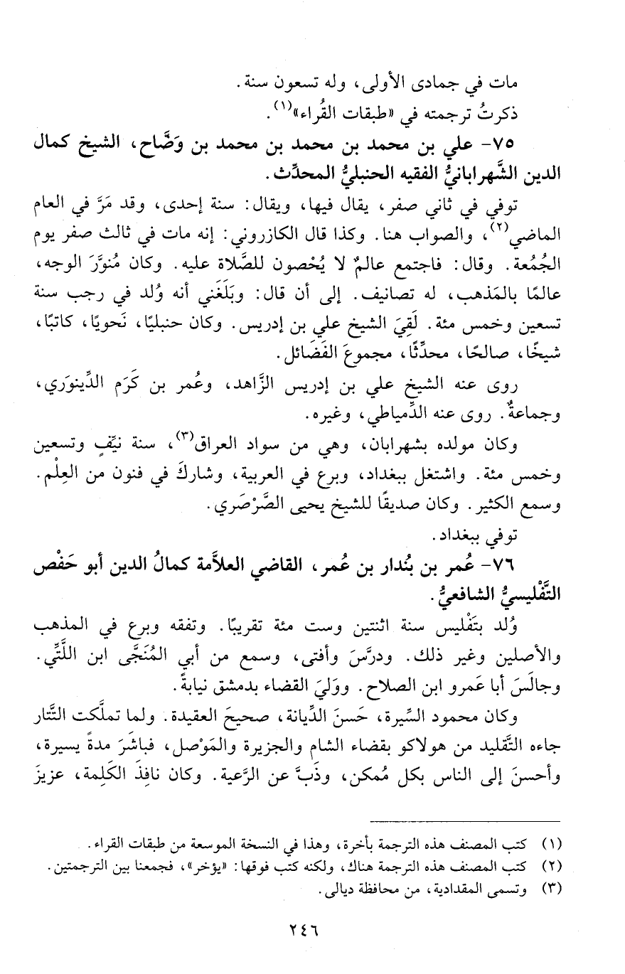 75 - علي بْن مُحَمَّد بْن مُحَمَّد بْن مُحَمَّد بْن وضاح، الشيخ كمال الدين الشهراباني، الفقيه، الحنبلي، المحدث. [المتوفى: 672 هـ]