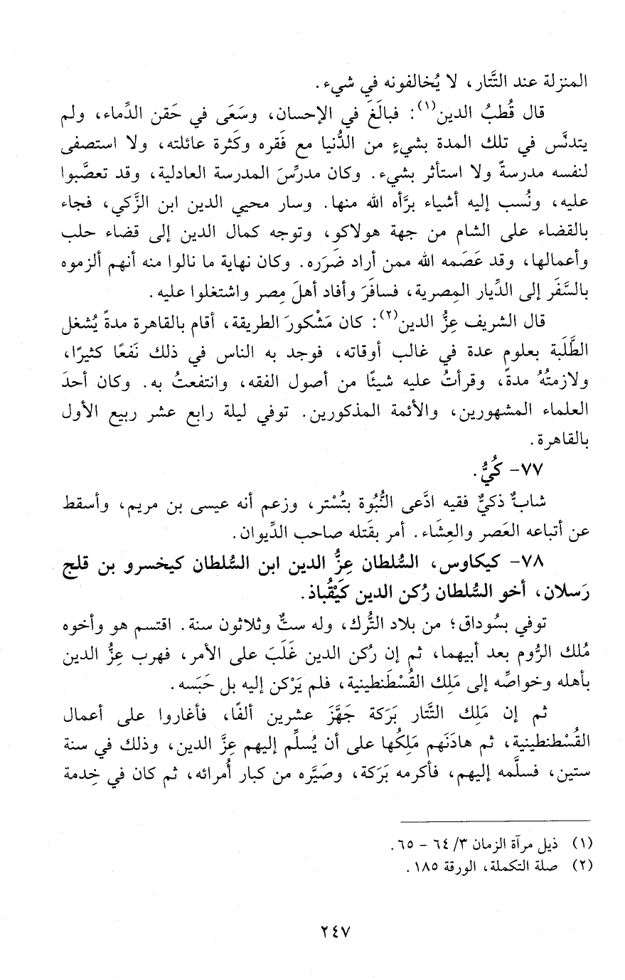 78 - كيكاوس، السّلطان عزّ الدّين ابن السّلطان كيخسرو بْن قِليج رسلان، [المتوفى: 672 هـ]