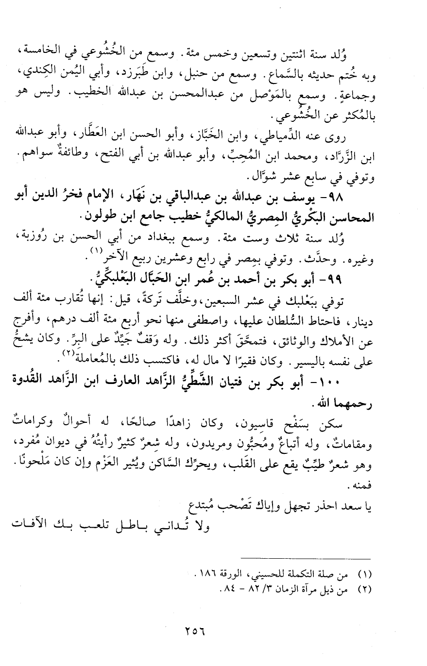 99 - أبو بكر بن أحمد بن عمر ابن الحبّال، البَعْلَبكّيّ. [المتوفى: 672 هـ]