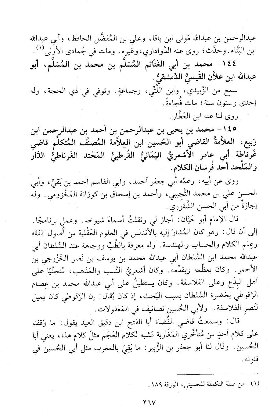 145 - مُحَمَّد بن يحيى بْن عَبْد الرَّحْمَن بْن أَحْمَد بْن عَبْد الرحمن ابن ربيع، العلّامة القاضي، أبو الْحُسَيْن ابْن العلّامة المصنّف المتكلّم، قاضي غَرْناطة أبي عامر الأَشْعَرِيّ، اليَمَانيّ؛ القُرْطُبيّ المحتد، الغَرْناطيُّ الدّار والمَلْحَد، [المتوفى: 673 هـ]