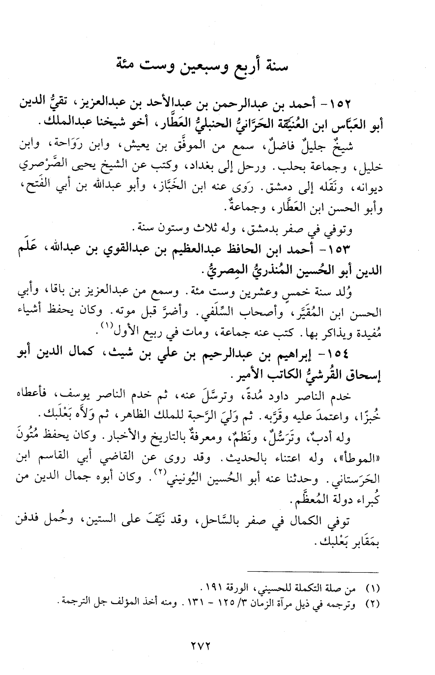 152 - أَحْمَد بْن عَبْد الرَّحْمَن بْن عَبْد الأحد بْن عَبْد الْعَزِيز، تقيُّ الدّين، أبو الْعَبَّاس ابن العُنَّيقة الحرّانيّ، الحنبليّ، العطّار، [المتوفى: 674 هـ]