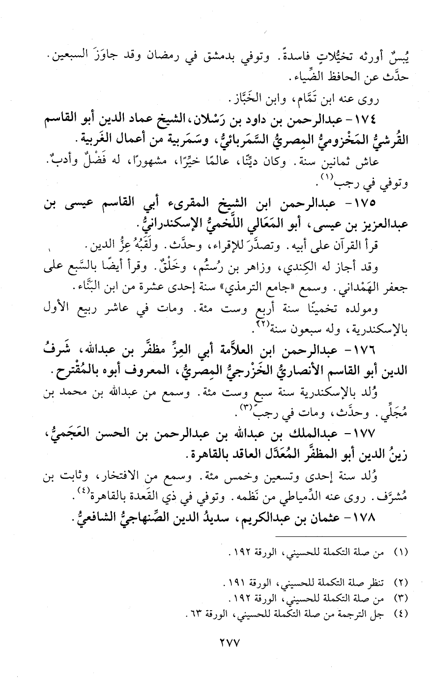 174 - عَبْد الرَّحْمَن بْن دَاوُد بْن رسلان، الشَّيْخ عمادُ الدّين، أبو القاسم الْقُرَشِيّ، المخزوميّ، الْمصريّ، السَّمَربائيّ. [المتوفى: 674 هـ]