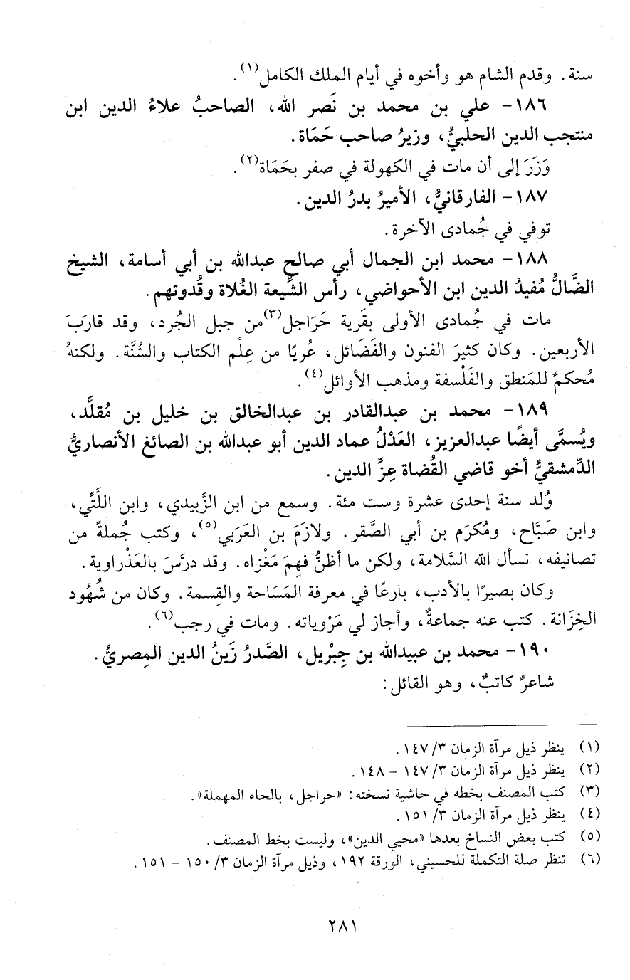 188 - محمد ابن الجمال أبي صالح عَبْد اللّه بْن أبي أسامة، الشيخ الضال، مفيد الدين ابن الأحواضيّ، [المتوفى: 674 هـ]