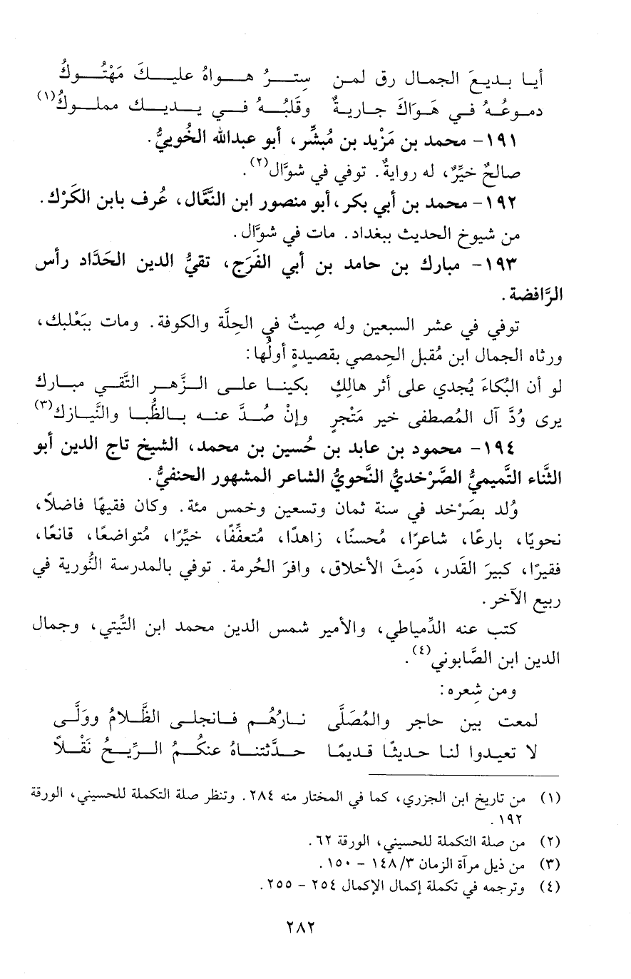 194 - محمود بْن عابد بْن حُسَيْن بْن مُحَمَّد، الشَّيْخ تاجُ الدّين، أبو الثّناء التّميميّ، الصَّرْخَديّ، النَّحْويّ، الشّاعر المشهور، الحنفيّ. [المتوفى: 674 هـ]
