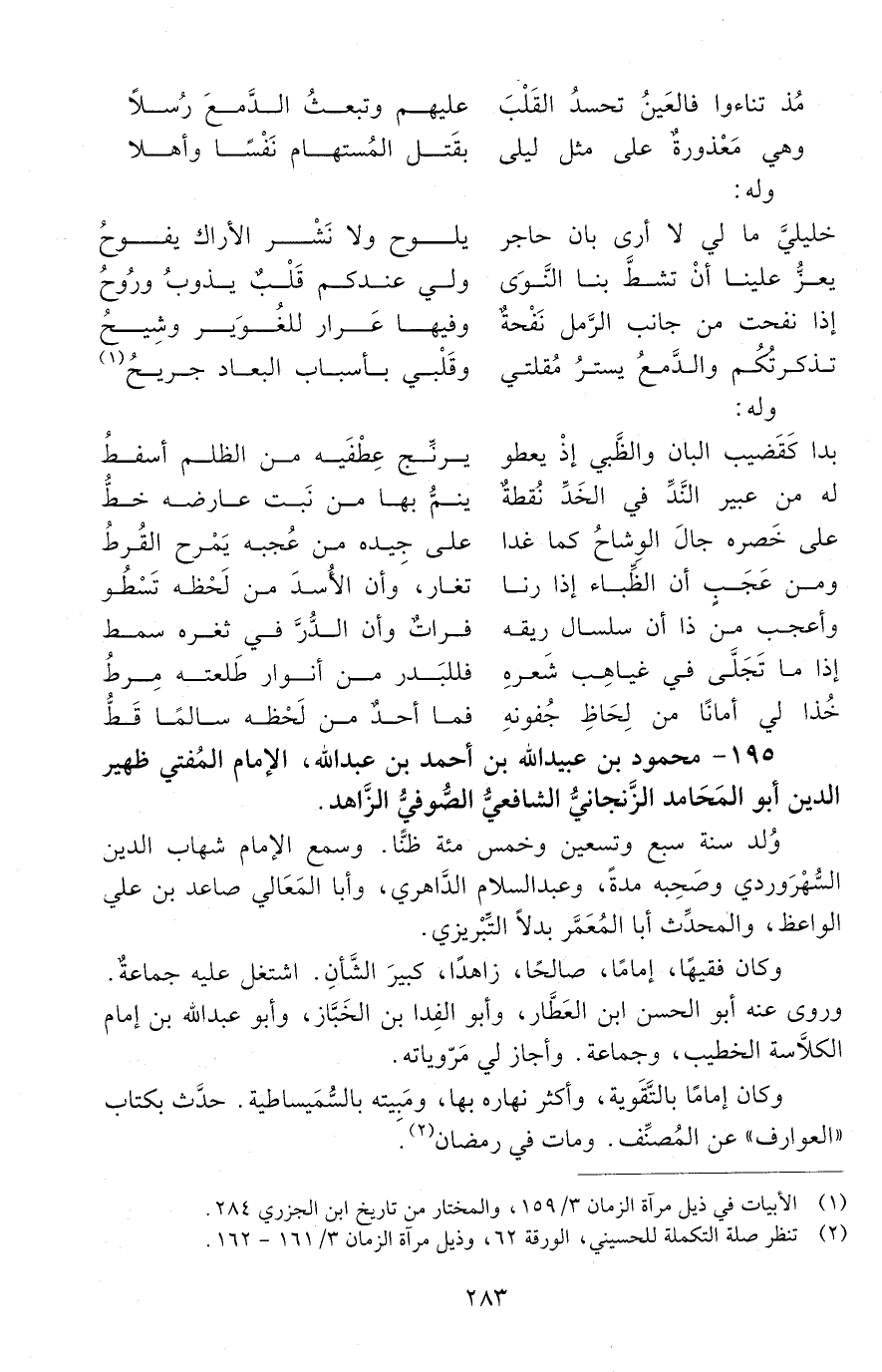 195 - محمود بْن عُبَيْد الله بْن أَحْمَد بْن عَبْد الله، الإِمَام، المفتي، ظهير الدّين، أبو المحامد الزَّنْجانيّ، الشّافعيّ الصُّوفيّ، الزّاهد. [المتوفى: 674 هـ]