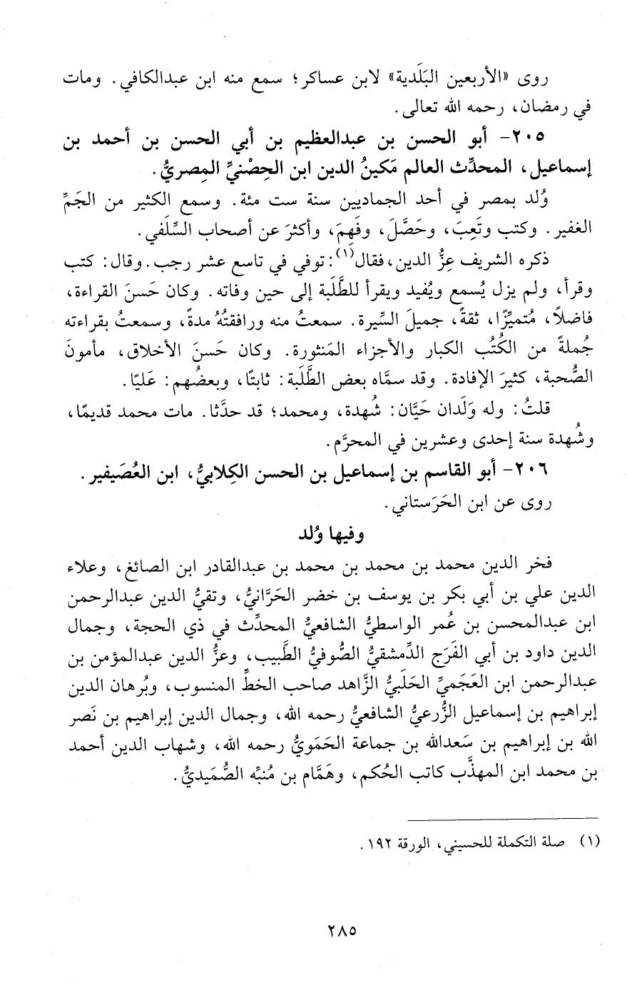 205 - أبو الْحَسَن بْن عَبْد العظيم بْن أبي الْحَسَن بْن أَحْمَد بْن إِسْمَاعِيل، المحدّث، العالم، مَكِين الدين ابن الحصني، المصري. [المتوفى: 674 هـ]