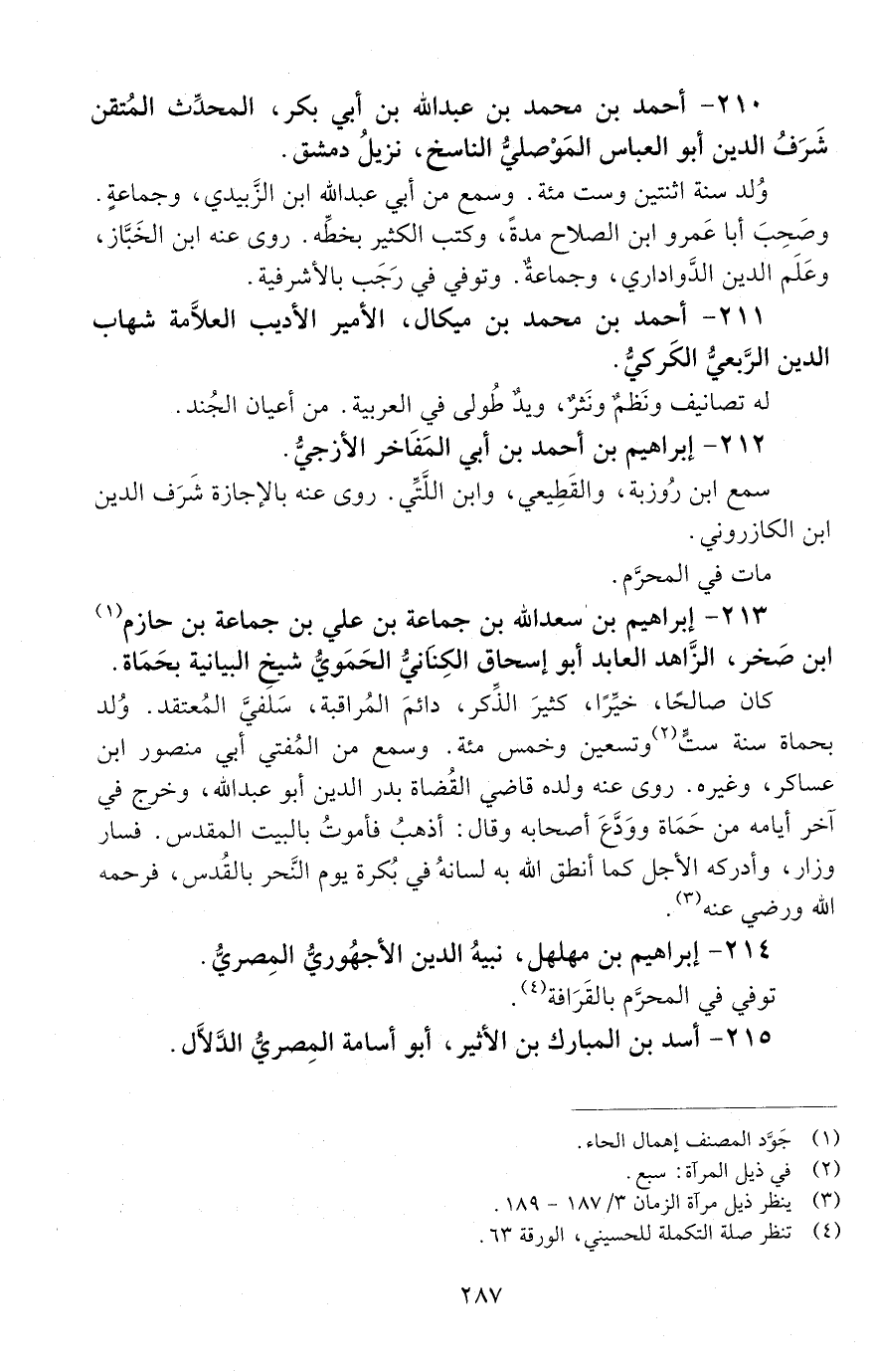 213 - إِبْرَاهِيم بْن سعد اللّه بْن جماعة بْن عليّ بن جماعة بن حازم بْن صخر، الزّاهد، العابد، أبو إِسْحَاق الكِنانيّ، الحمويّ [المتوفى: 675 هـ]