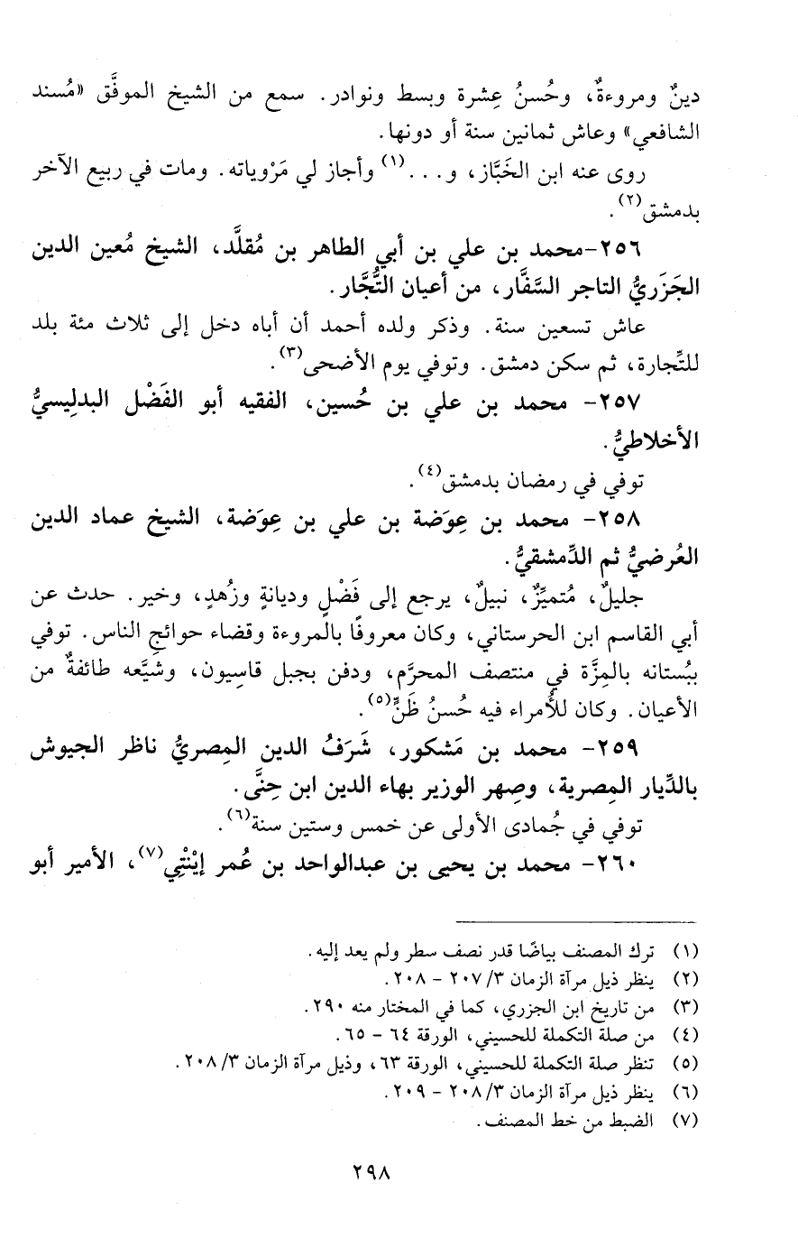 258 - مُحَمَّد بْن عِوَضَة بْن عليّ بْن عوضة، الشَّيْخ عماد الدّين العُرْضيّ، ثُمَّ الدّمشقيّ. [المتوفى: 675 هـ]