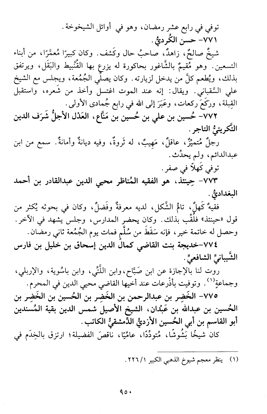 773 - حينئذ، هُوَ الفقيه المناظر محيي الدِّين عَبْد القادر بْن أَحْمَد البغداديّ. [المتوفى: 700 هـ]