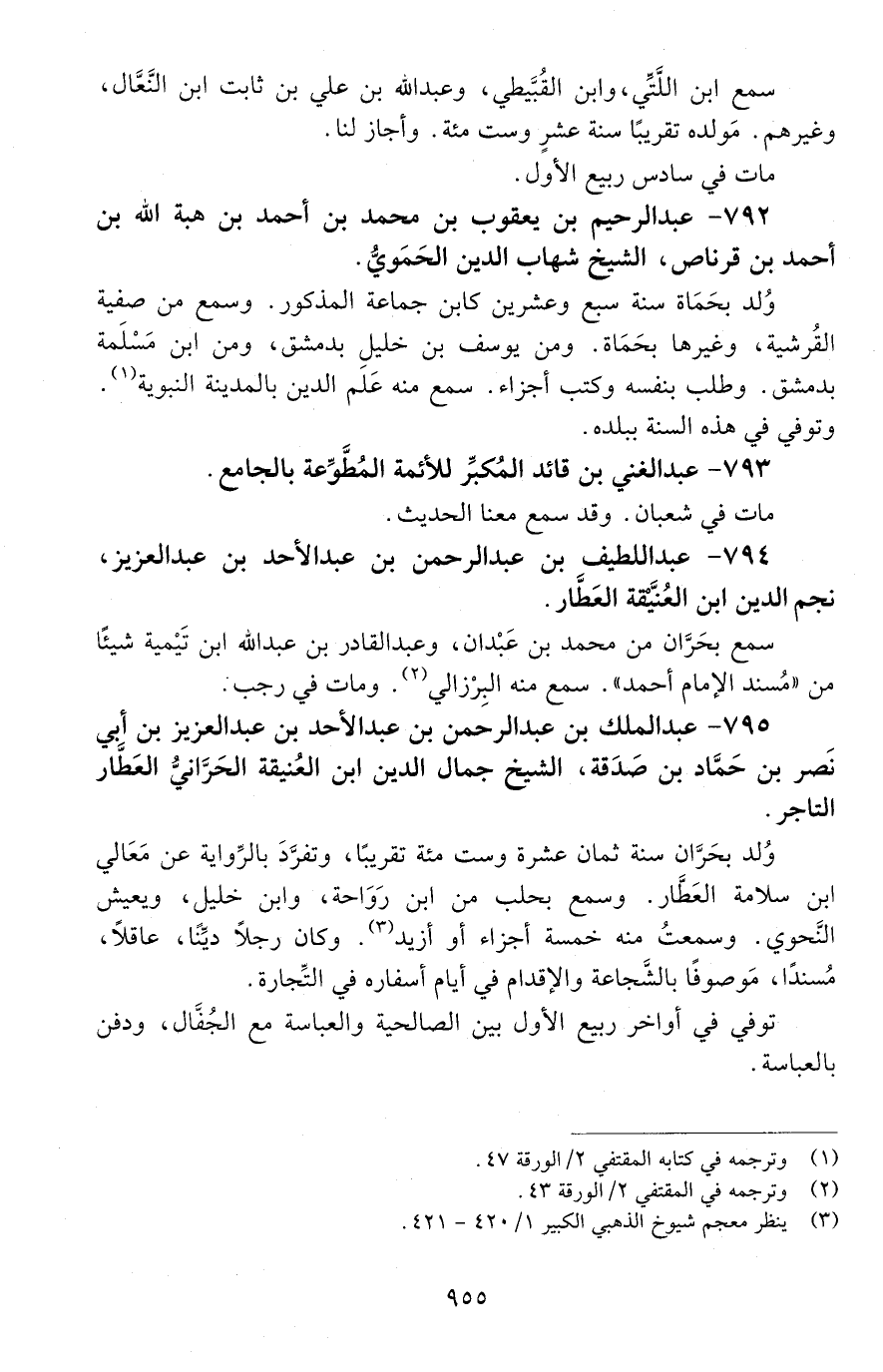 794 - عَبْد اللّطيف بْن عَبْد الرَّحْمَن بْن عَبْد الأحد بْن عبد العزيز، نجم الدِّين ابن العُنيقة، العَطَّار. [المتوفى: 700 هـ]