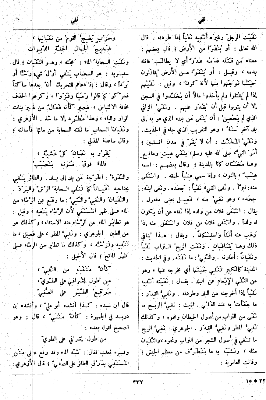 ونَفَتِ السحابةُ الماءَ: مَجَّته، وَهُوَ النَّفَيان؛ قَالَ سِيبَوَيْهِ: هُوَ السَّحَابُ يَنْفي أَوَّلَ شيءٍ رَشًّا أَو بَرَداً، وَقَالَ: إِنما دَعَاهُمْ لِلتَّحْرِيكِ أَنَّ بَعْدَهَا سَاكِنًا فحرَّكوا كَمَا قَالُوا رَمَيَا وغَزَوَا، وَكَرِهُوا الْحَذْفَ مَخَافَةَ الِالْتِبَاسِ، فَيَصِيرُ كأَنه فَعَالٌ مِنْ غَيْرِ بَنَاتِ الْوَاوِ وَالْيَاءِ، وَهَذَا مُطَّرِد إِلا مَا شَذَّ. الأَزهري: ونَفَيانُ السحابِ مَا نَفته السَّحَابَةُ مِنْ مَائِهَا فأَسالته؛ وَقَالَ سَاعِدَةُ الْهُذَلِيُّ:
