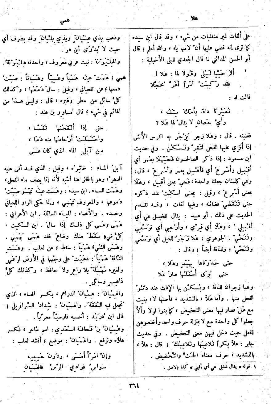 ؛ قَالَ: هلَّا، بِالتَّشْدِيدِ، حَرْفٌ مَعْنَاهُ الحَثُّ والتَّحْضيض. وَذَهَبَ بِذِي هِلِّيَانٍ [هِلِّيَانَ] وبذِي بِلِّيانٍ [بِلِّيانَ] وَقَدْ يُصْرَفُ أَي حَيْثُ لَا يُدْرَى أَين هُوَ. والهِلْيَوْنُ: نَبْتٌ عَرَبِيٌّ معروف، واحدته هِلْيَوْنَةٌ.