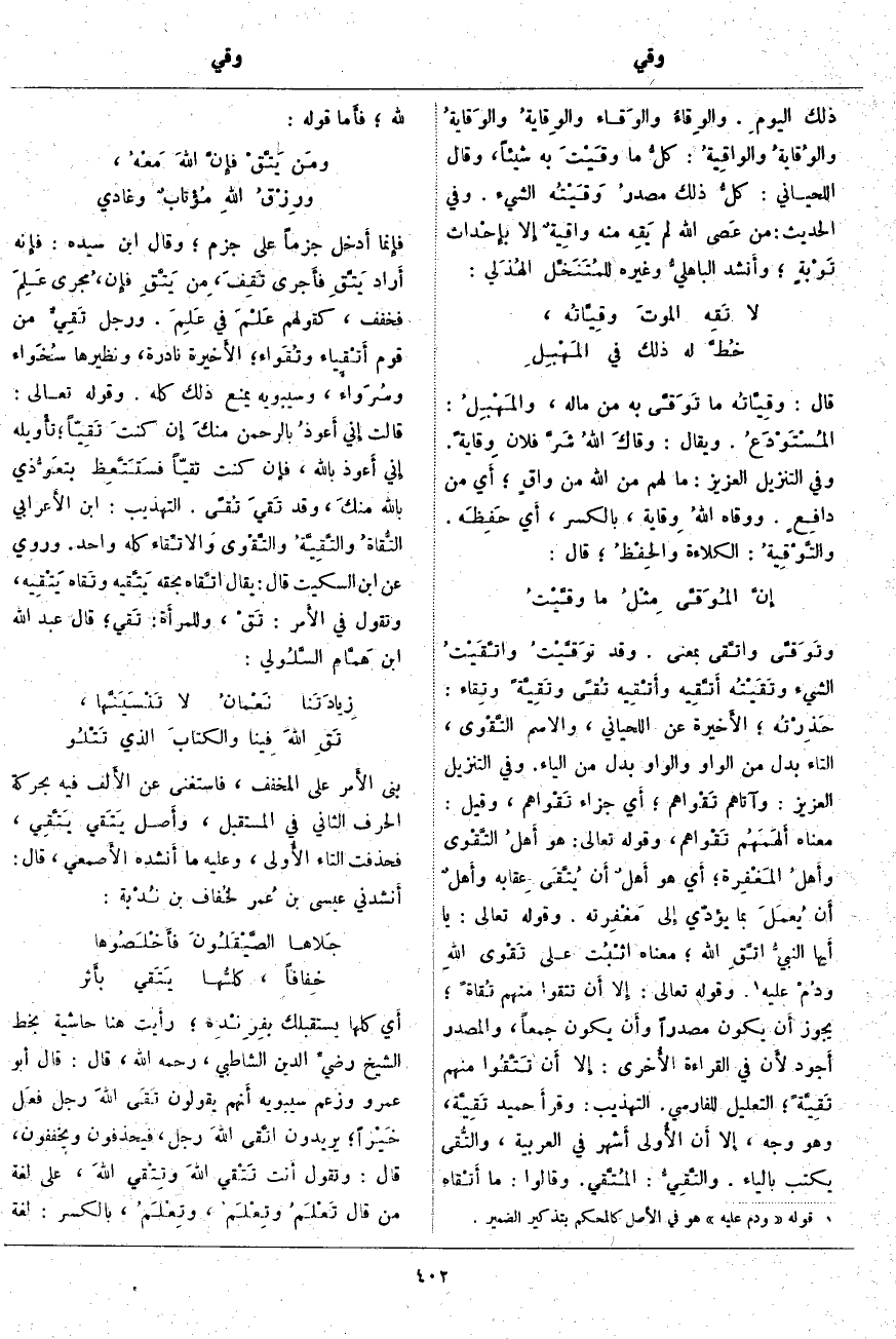 ؛ مَعْنَاهُ اثْبُت عَلَى تَقْوى اللهِ ودُمْ عَلَيْهِ «2» وَقَوْلُهُ تَعَالَى: إِلَّا أَنْ تَتَّقُوا مِنْهُمْ تُقاةً