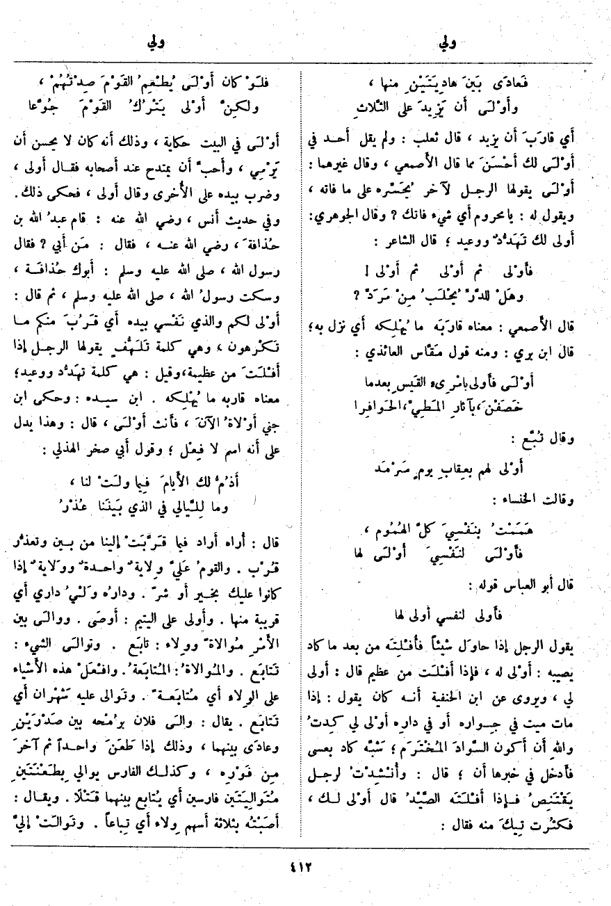 يَقُولُ الرَّجُلُ إِذا حاوَل شَيْئًا فأُفْلِتَه مِنْ بَعْدِ مَا كَادَ يُصِيبُهُ: أَوْلى لَهُ، فإِذا أَفْلَت مِنْ عَظِيمٍ قَالَ: أَولى لِي، وَيُرْوَى
