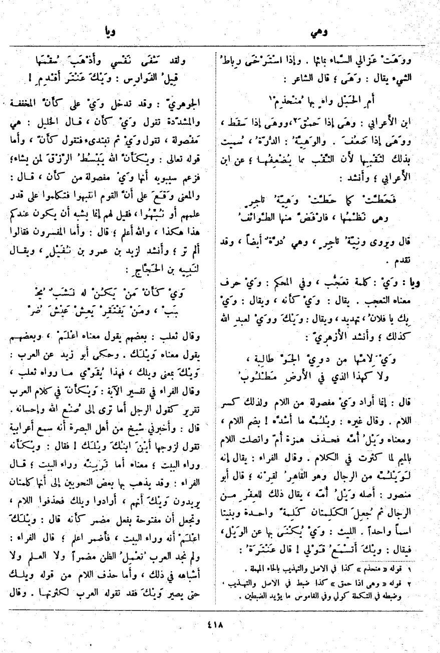وَيَا: وَيْ: كَلِمَةُ تعَجُّب، وَفِي الْمُحْكَمِ: وَيْ حَرْفٌ مَعْنَاهُ التَّعَجُّبُ. يُقَالُ: وَيْ كأَنه، وَيُقَالُ: وَيْ بِك يَا فلانُ، تَهْدِيدٌ، وَيُقَالُ: وَيْكَ ووَيْ لعبدِ اللَّهِ كَذَلِكَ؛ وأَنشد الأَزهريّ: