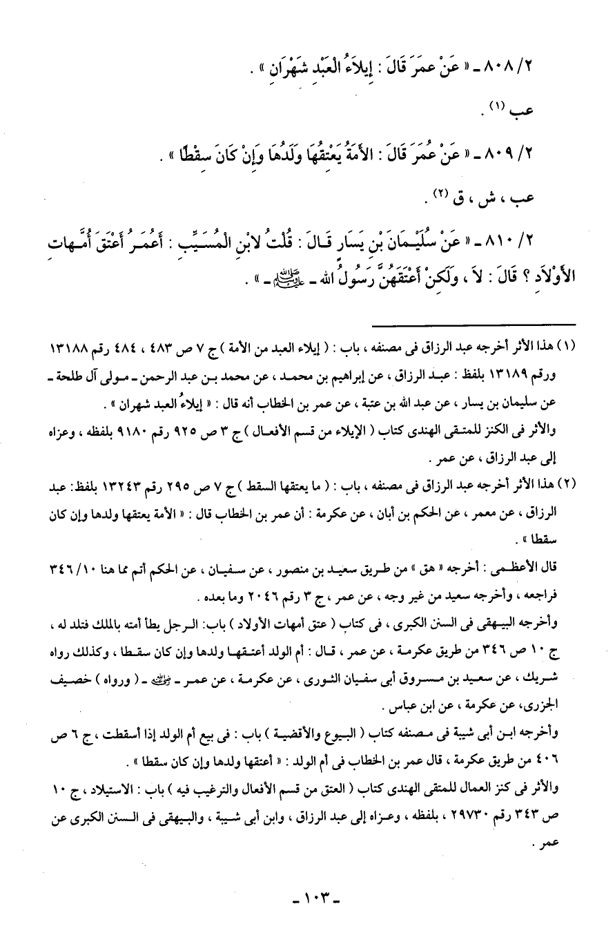 2/ 808 - "عَنْ عمَرَ قَالَ: إِيلَاءُ الْعَبْدِ شَهْرَانِ".