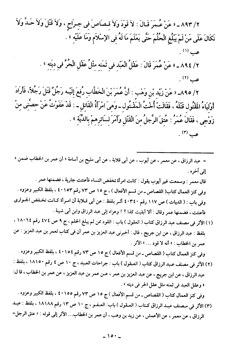 2/ 894 - "عَنْ عُمَرَ قَالَ: عَقْلُ الْعَبْدِ فِى ثَمَنِهِ مِثْلُ عَقْلِ الْحُرِّ فِى دِيَتِهِ".