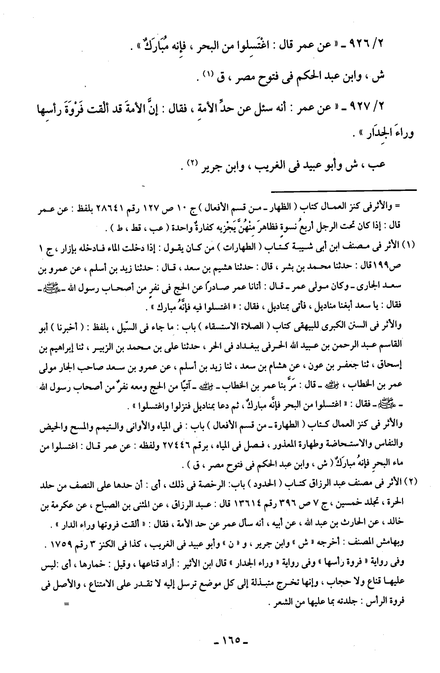 2/ 926 - "عن عمر قال: اغْتَسِلوا من البحر، فإِنه مُبَارَكٌ".