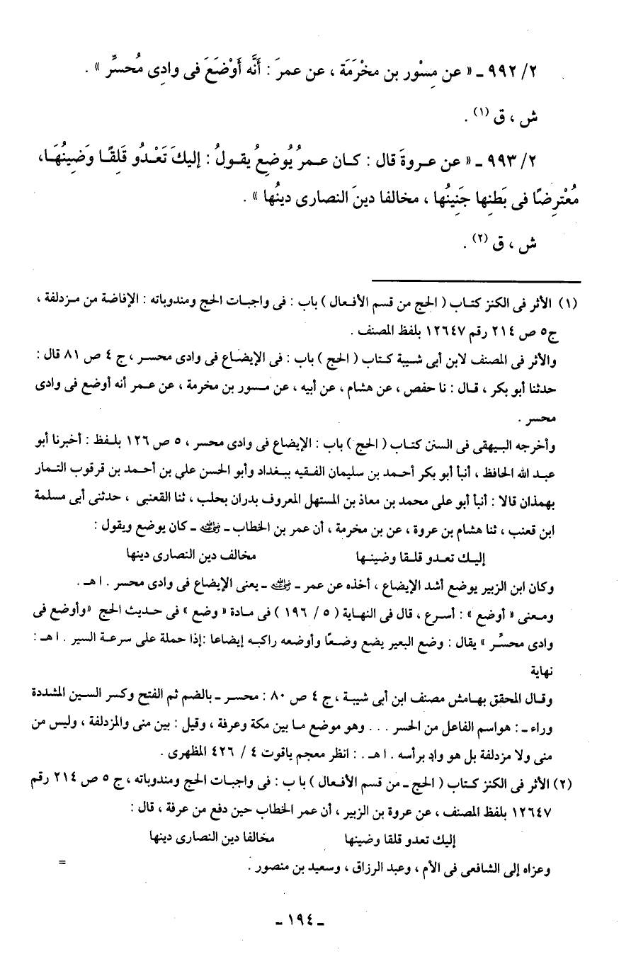 2/ 992 - "عن مِسْور بن مخْرَمَة، عن عمرَ: أَنَّه أَوْضَعَ في وادِى مُحسِّر".
