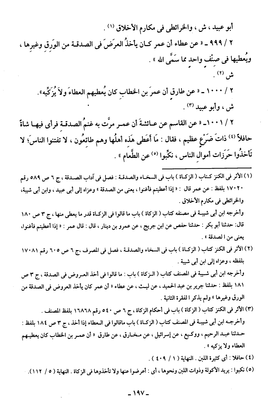 2/ 1000 - "عن طارقٍ أن عمرَ بن الخطابِ كان يُعطيهم العطاءَ ولَا يُزَكِّيه".