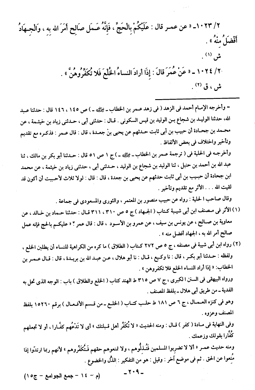 2/ 1024 - "عَنْ عُمَرَ قالَ: إِذَا أرادَ النساءُ الخُلْعَ فَلا تُكَفِّرُوهُنَّ".