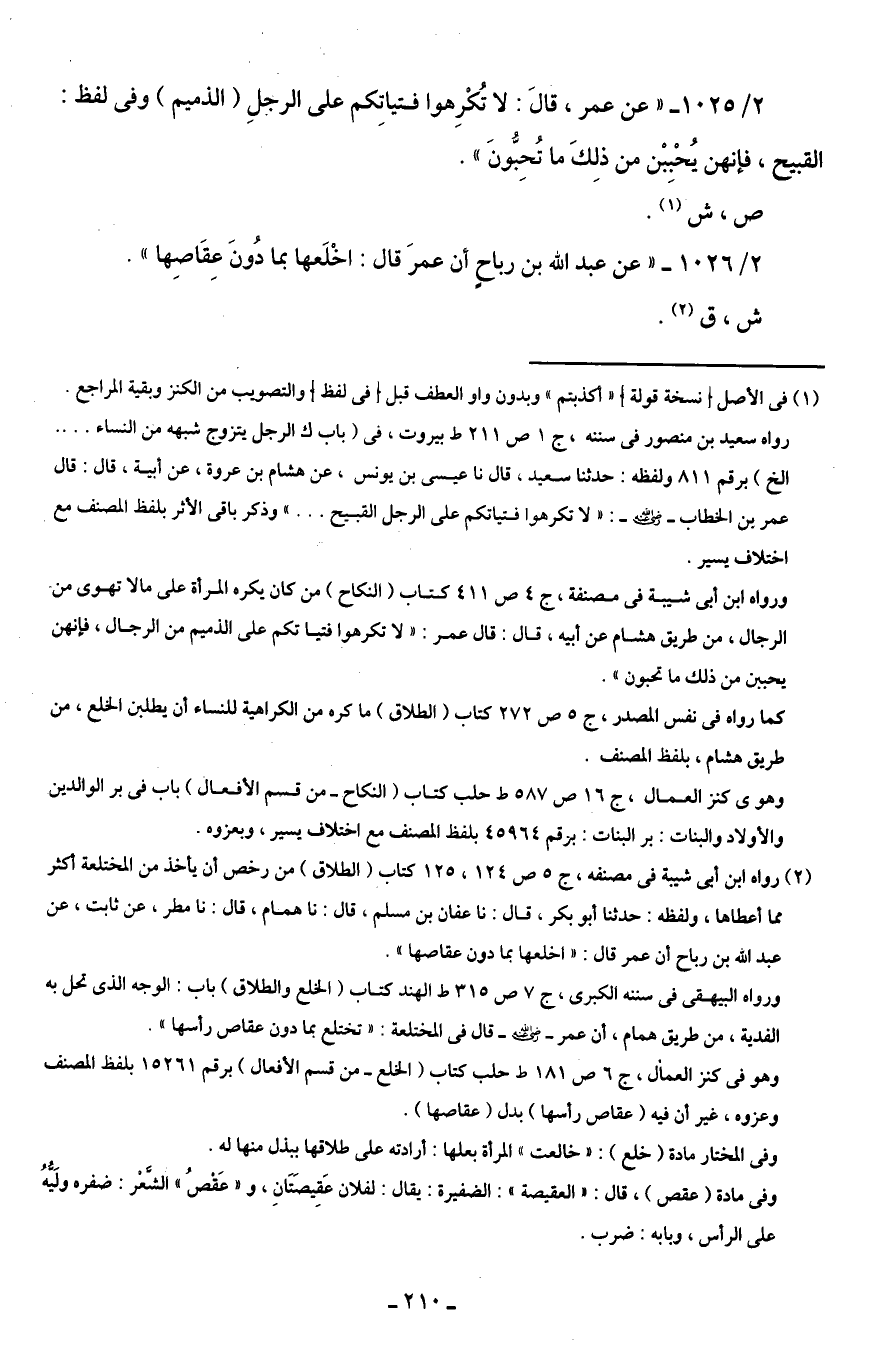 2/ 1026 - "عن عبد الله بن رباحٍ أن عمرَ قال: اخْلَعها بما دُونَ عِقَاصِها".