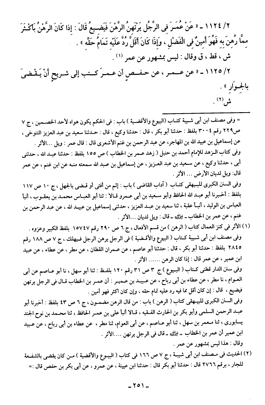(¬1) الأثر في كنز العمال كتاب (الرهن) من قسم الأفعال، ج 6 ص 290 رقم 15747 بلفظ الكبير وعزوه.
