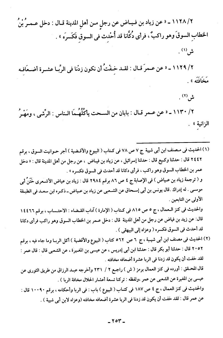 (¬2) الحديث في مصنف ابن أبى شيبة، ج 6 ص 562 كتاب (البيوع والأقضية) أكل الربا وما جاء فيه، برقم 2052 قال: حدثنا أبو بكر قال: حدثنا ابن أبى إدريس، عن عيسى بن المغيرة، عن الشعبى قال: قال عمر: لقد خفت أن يكون قد زدنا في الربا عشرة أضعافه مخافته.