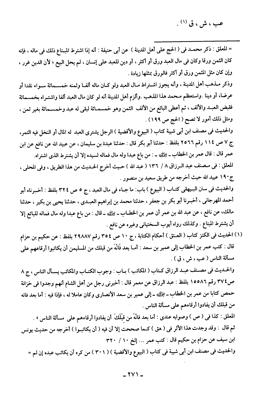 (¬1) الحديث في الكنز كتاب (العتق) أحكام الكتابة، ج 10 ص 354 رقم 29887 بلفظ: عن حكيم بن حزام قال: كتب عمر بن الخطاب إلى عمير بن سعد: أما بعد فَانْهَ من قبلك من المسلمين أن يكاتبوا أرقاعهم على مسألة الناس (عب، ش، ق).