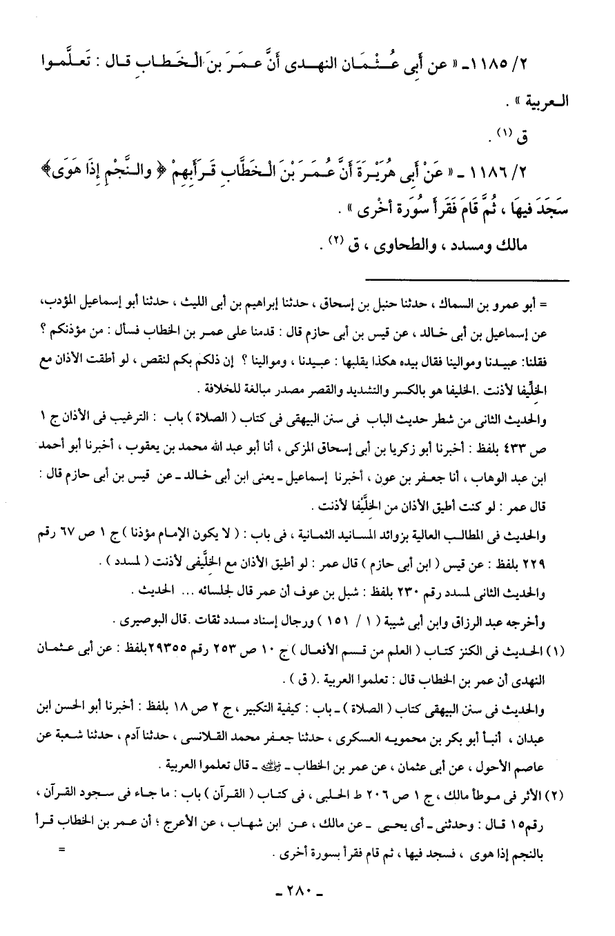 2/ 1185 - "عن أَبِى عُثْمَان النهدى أَنَّ عمَرَ بن الْخَطابِ قال: تَعلَّموا العربية".
