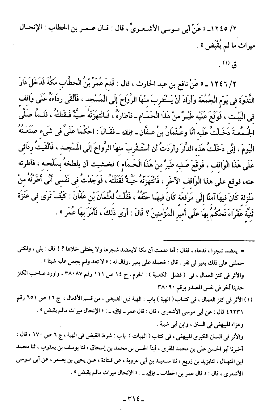 2/ 1245 - "عَنْ أبي موسى الأشعرىِّ، قال: قال عمر بن الخطاب: الإنحال ميراث ما لم يُقْبَض".