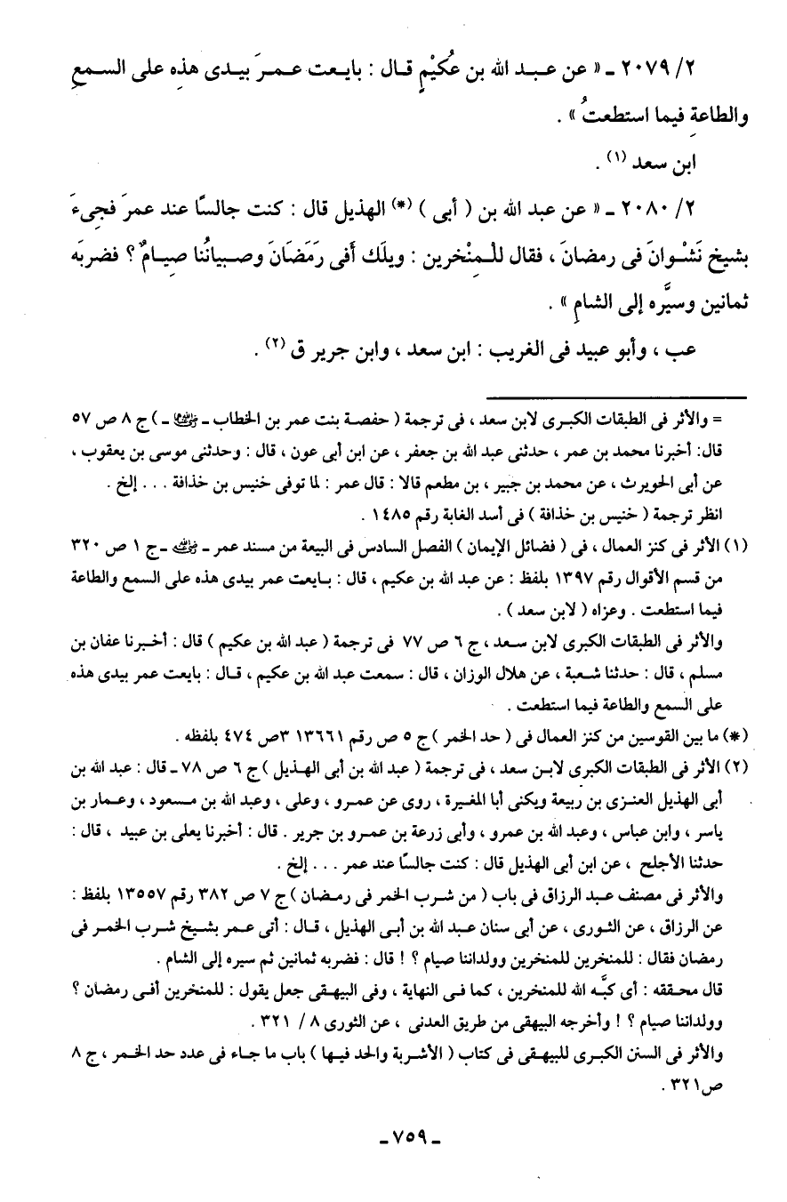 2/ 2079 - "عن عبد اللَّه بن عُكيْمٍ قال: بايعت عمرَ بيدى هذِه على السمعِ والطاعةِ فيما استطعتُ".