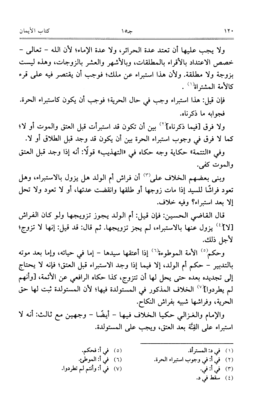 وبنى بعضهم الخلاف على أن فراش أم الولد هل يزول بالاستبراء، وهل تعود فراشاً للسيد إذا مات زوجها أو طلقها وانقضت عدتها، أو لا تعود ولا تحل إلا بعد استبراء؟ وفيه خلاف.