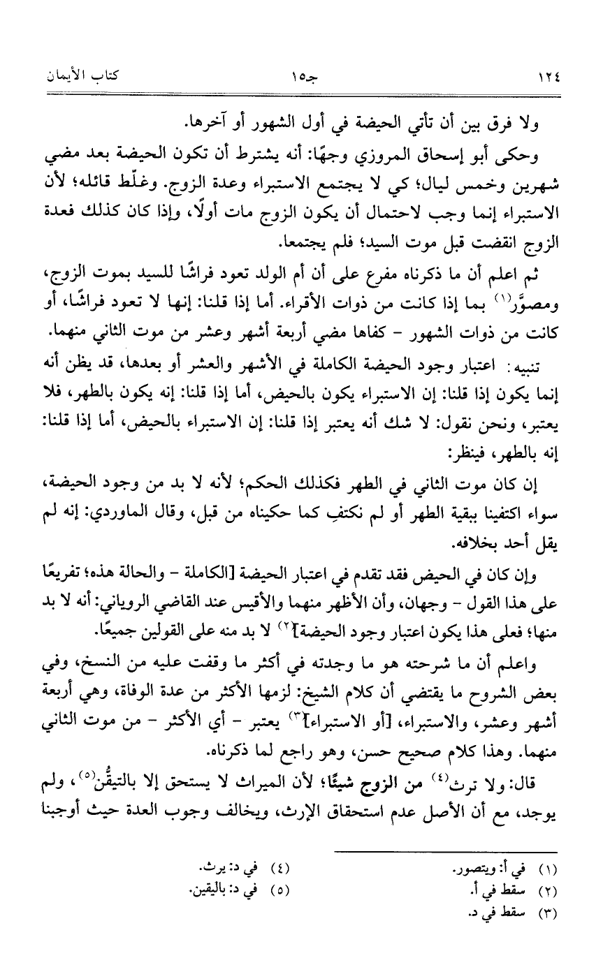 واعلم أن ما شرحته هو ما وجدته في أكثر ما وقفت عليه من النسخ، وفي بعض الشروح ما يقتضي أن كلام الشيخ: لزمها الأكثر من عدة الوفاة، وهي أربعة أشهر وعشر، والاستبراء، [أو الاستبراء] يعتبر- أي الأكثر- من موت الثاني منهما. وهذا كلام صحيح حسن، وهو راجع لما ذكرناه.